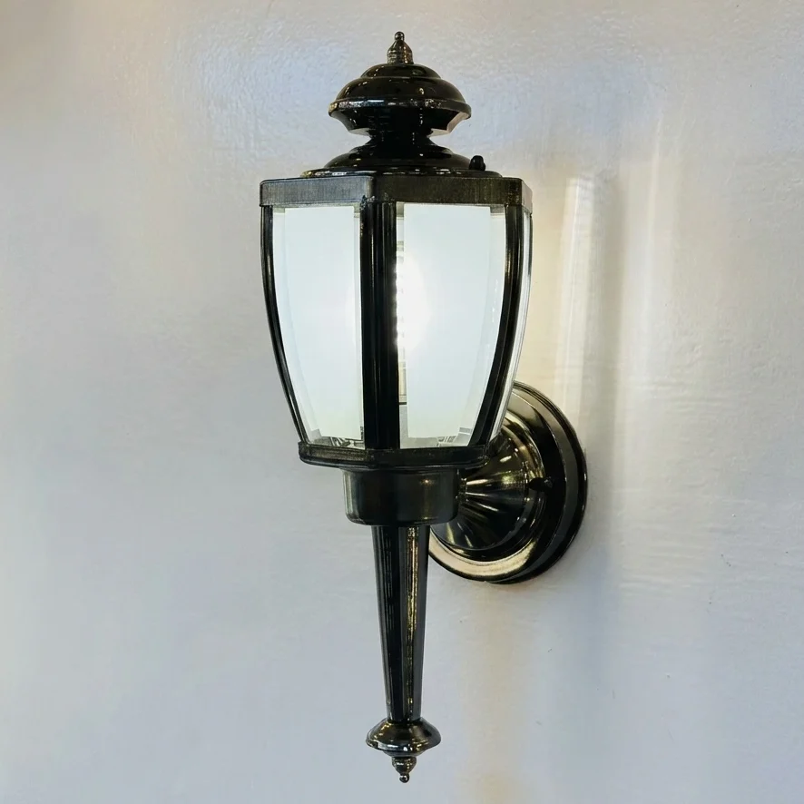 The Sentinel wall lantern brings timeless elegance and reliable illumination to exterior spaces. Crafted from durable weather-resistant metal with a traditional matte black finish, this fixture evokes the charm of vintage carriage lights. The frosted glass panels soften and diffuse the light source, casting a bright, cool white glow that effectively illuminates entryways, patios, and garden walls while enhancing the rustic or classic architecture of your home.